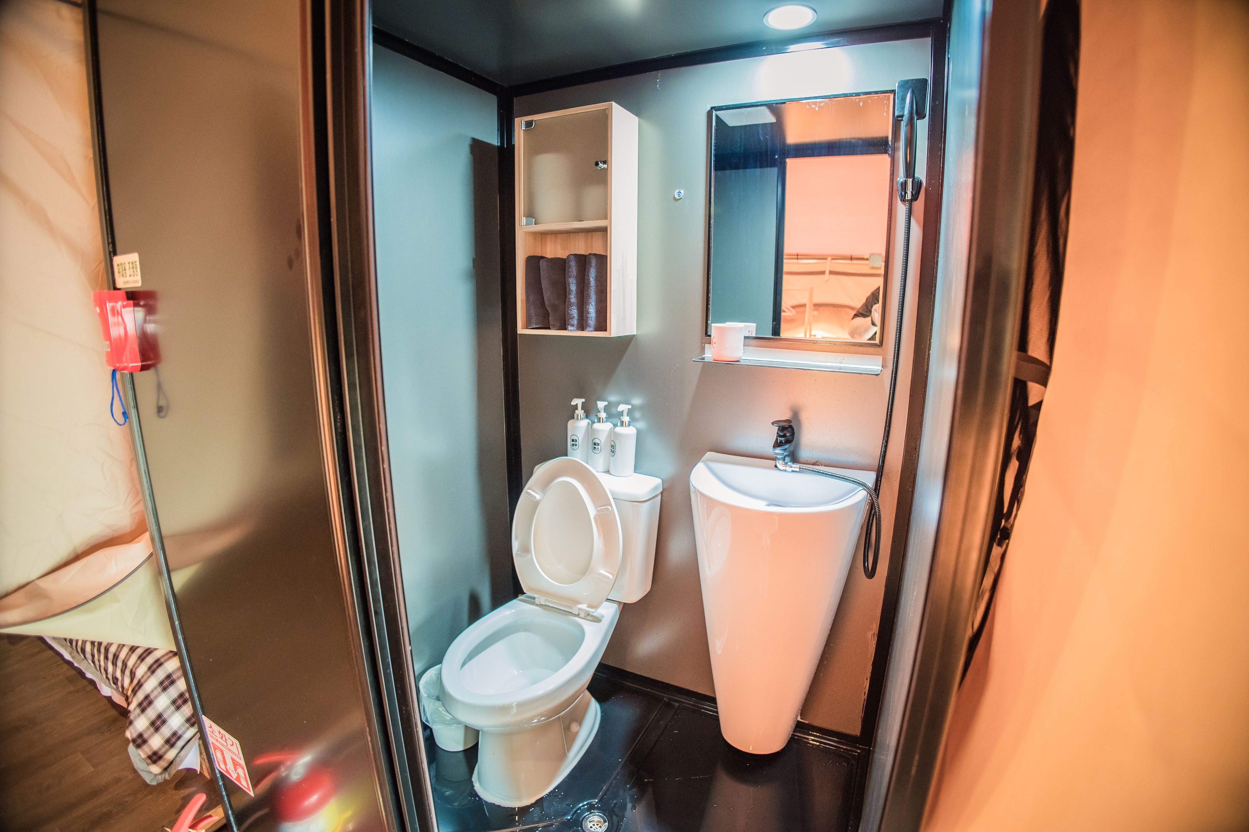 각 객실 내에 개별 화장실과 샤워실이 완비되어 있습니다.